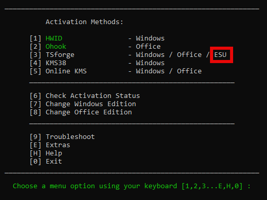 La última versió del script de Massgrave ja suporta la activacíó de la ESU