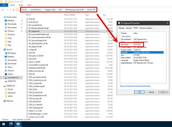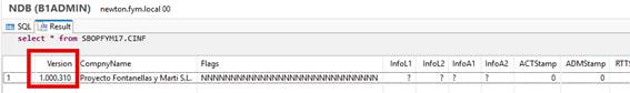 DIAPI Version, SBOCOMMON.SINF and SBOPFYM17.CINF (one SBO company in the server) are the same: 10.0.310.0